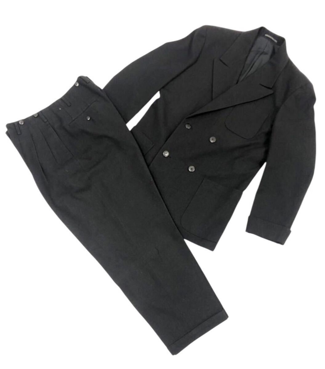 - ■ YOHJI YAMAMOTO POUR HOMME ヨウジヤマモト プールオム ■ 丸文字 オールド 80s ウール地 ダブル スーツ 上下 セット ダークグレー M