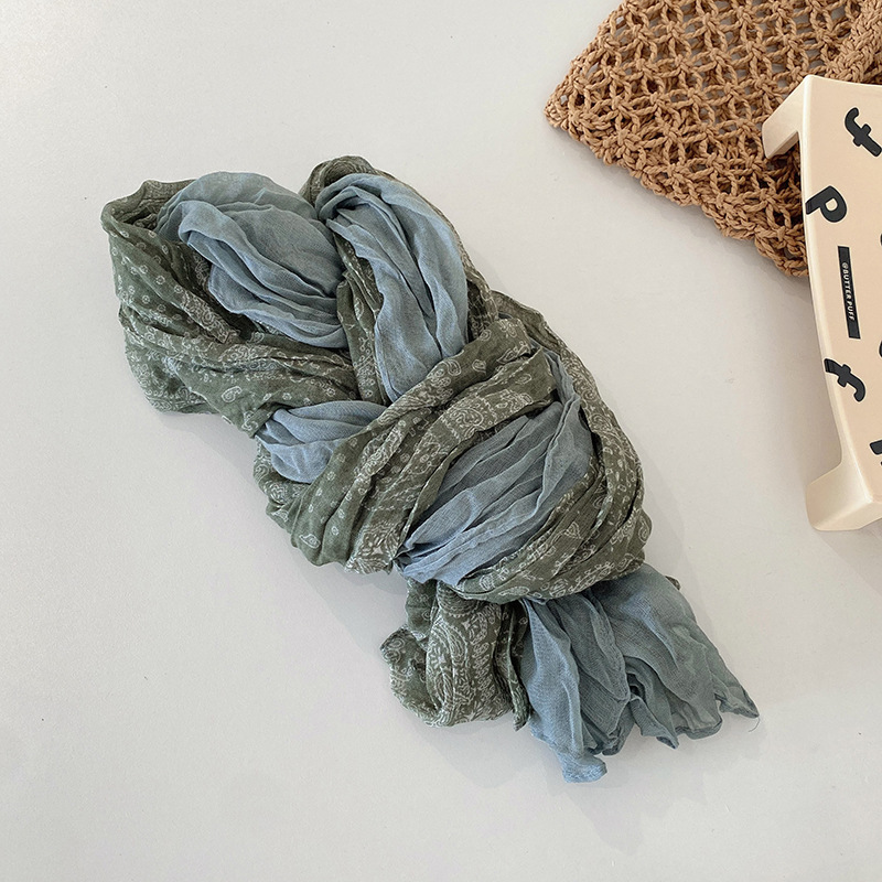 - 新品●送料無料【グレー】 大判 ナチュラル コットンスカーフ ショール 広げると大きくなる まとめると小さく 皺加工 プリーツ