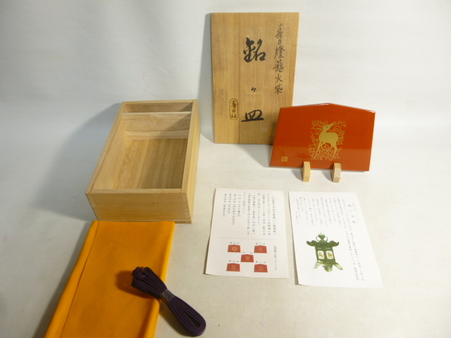- 春日燈籠火袋 鹿の文様 銘々皿 共箱 春日大社 朱塗/7