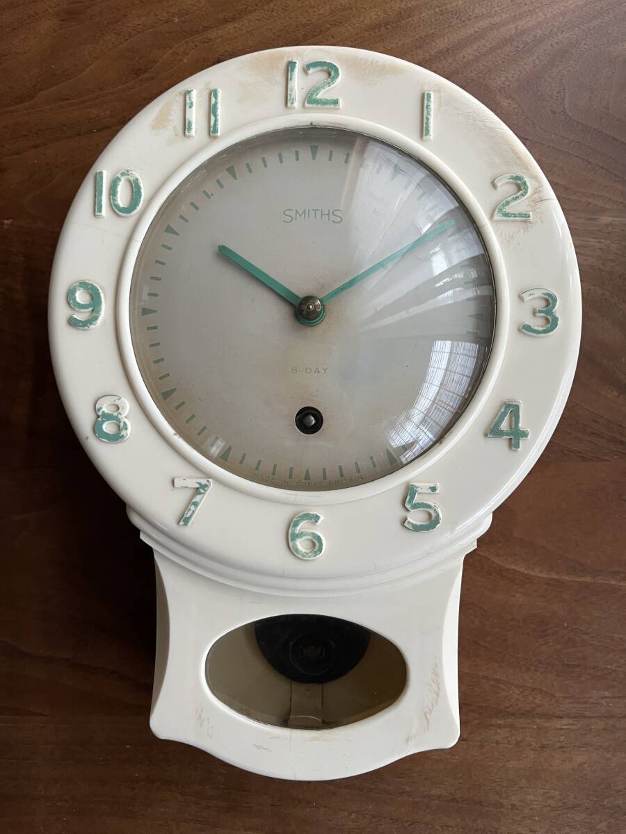 > Smiths Made in Great Britain スミス アンティーク ビンテージ 掛時計 英国製 手巻き ベークライト ヒスイ