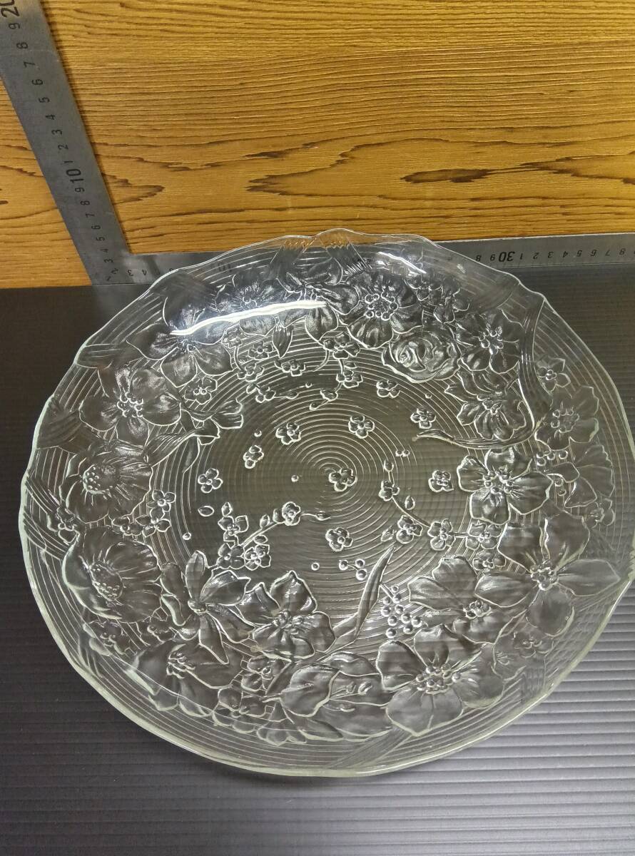 - 24121203 カメイガラスデコレーションプレート ガラス大皿 花柄 花柄大皿 美品 ガラスプレート フルーツ皿