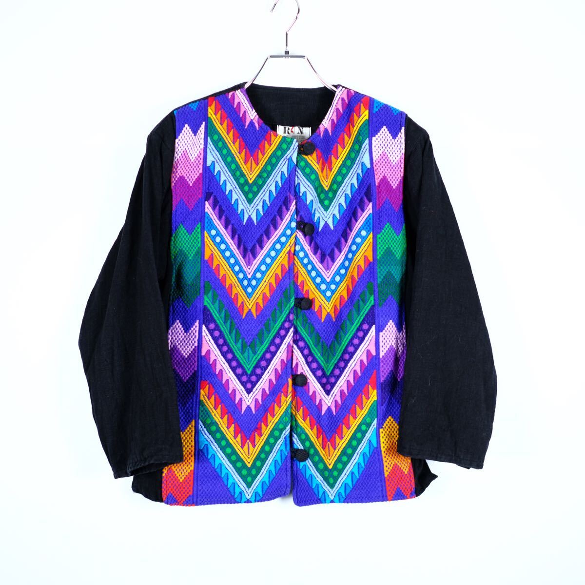 - 1980s ビンテージ カラフル刺繍 ジャケット ハンドメイド 古着屋 アート グアテマラ製 長袖 デザイン
