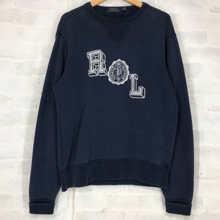 - POLO RALPH LAUREN ポロ ラルフローレン 前V クルーネック ロゴ スウェット トレーナー SIZE: M ネイビー MH632024121011