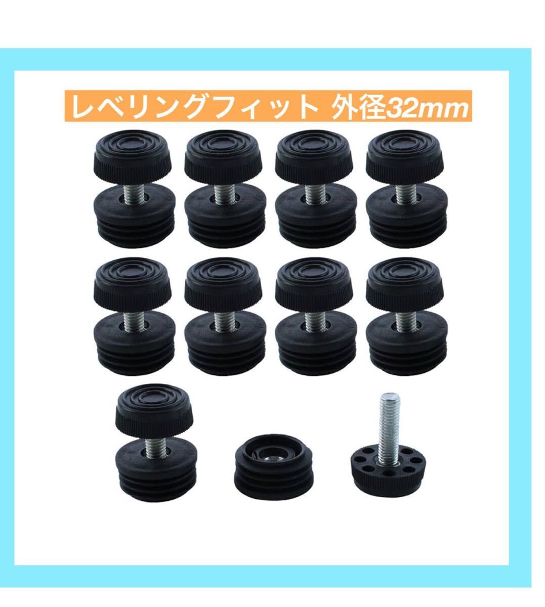 - レベリングフィット 外径32mm プラスチック 円形 チューブインサートキット 家具 グライド 調節可能 レベラー デスク ソファー 脚用 10セッ
