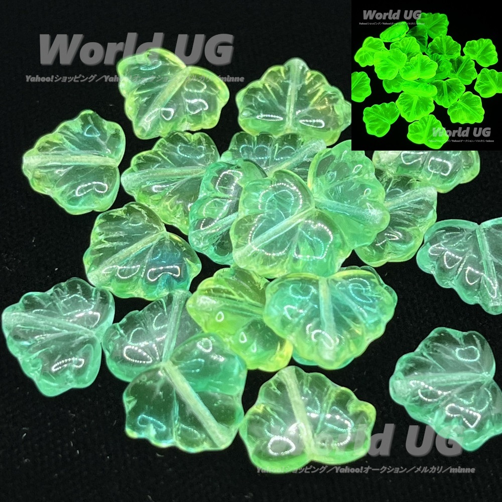 - 【再入荷】 ウランガラス メイプルリーフビーズ グリーン/イエロー2トーン 13mm×11mm 5粒