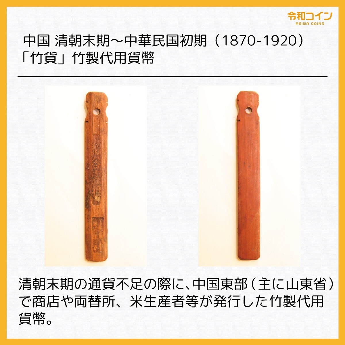 - [令和コイン]中国 竹貨 稲谷壹担(1870-1920) 清朝末期~中華民国初期 代用貨幣・トークン[E3924]