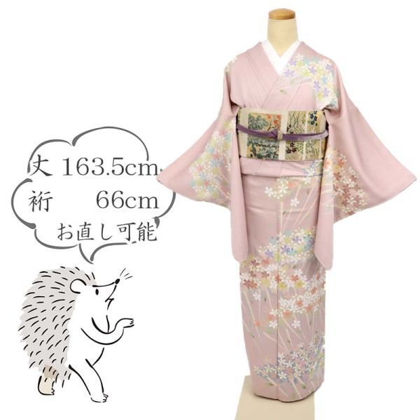 > 【訪問着】 長尺 彩る小さな花々桜の花模様 灰桜ピンク 袷正絹着物 HP10-9
