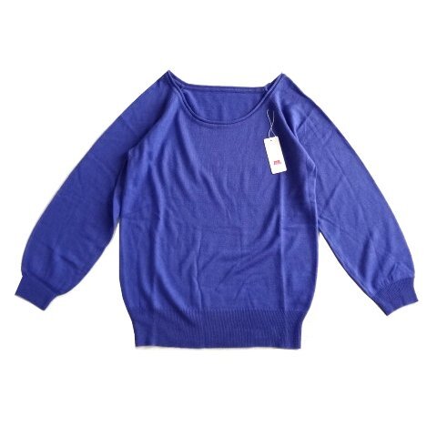 - 新品 ryuryu リュリュ ベルーナ ニット セーター 青 クルーネック ロング丈 BELLUNA レディース