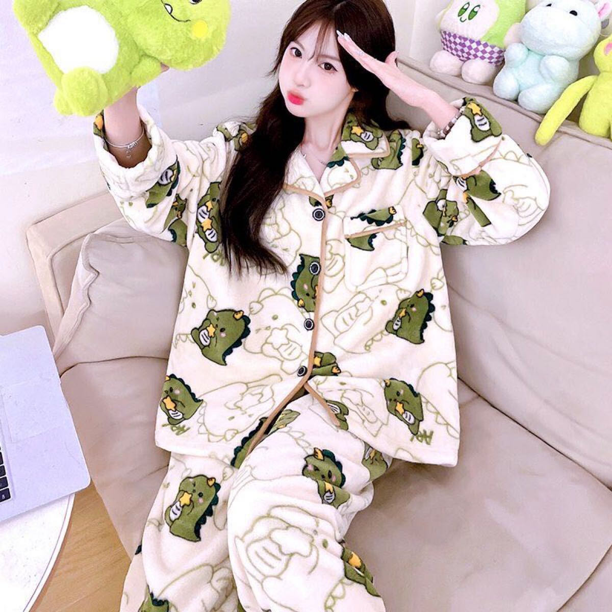 - ルームウェア 部屋着 寝間着 上下セット ナイトウェア 総柄 冬パジャマ レディース ベルベット 長袖 セットアップ 2点セットSLPC008(M-2XL)