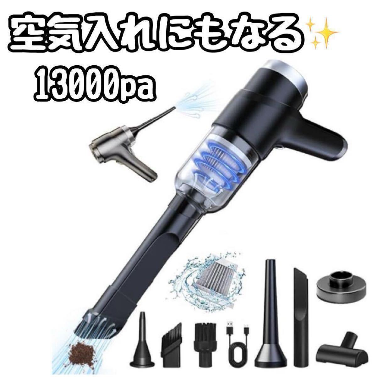 - ハンディクリーナー 新品 掃除機 充電式 13000pa コードレス 空気入れ