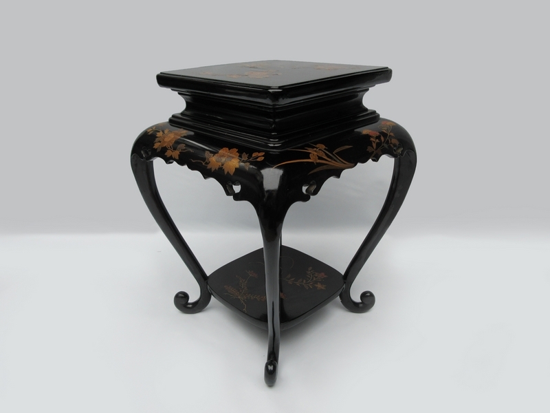 - 花台 卓 時代漆器 ■ 高卓 蒔絵 [ 草花 菊 バラ 桔梗 ] 金梨地 ■ 天然木 時代漆器 花台 飾台 香炉台 古美術 漆器 ■