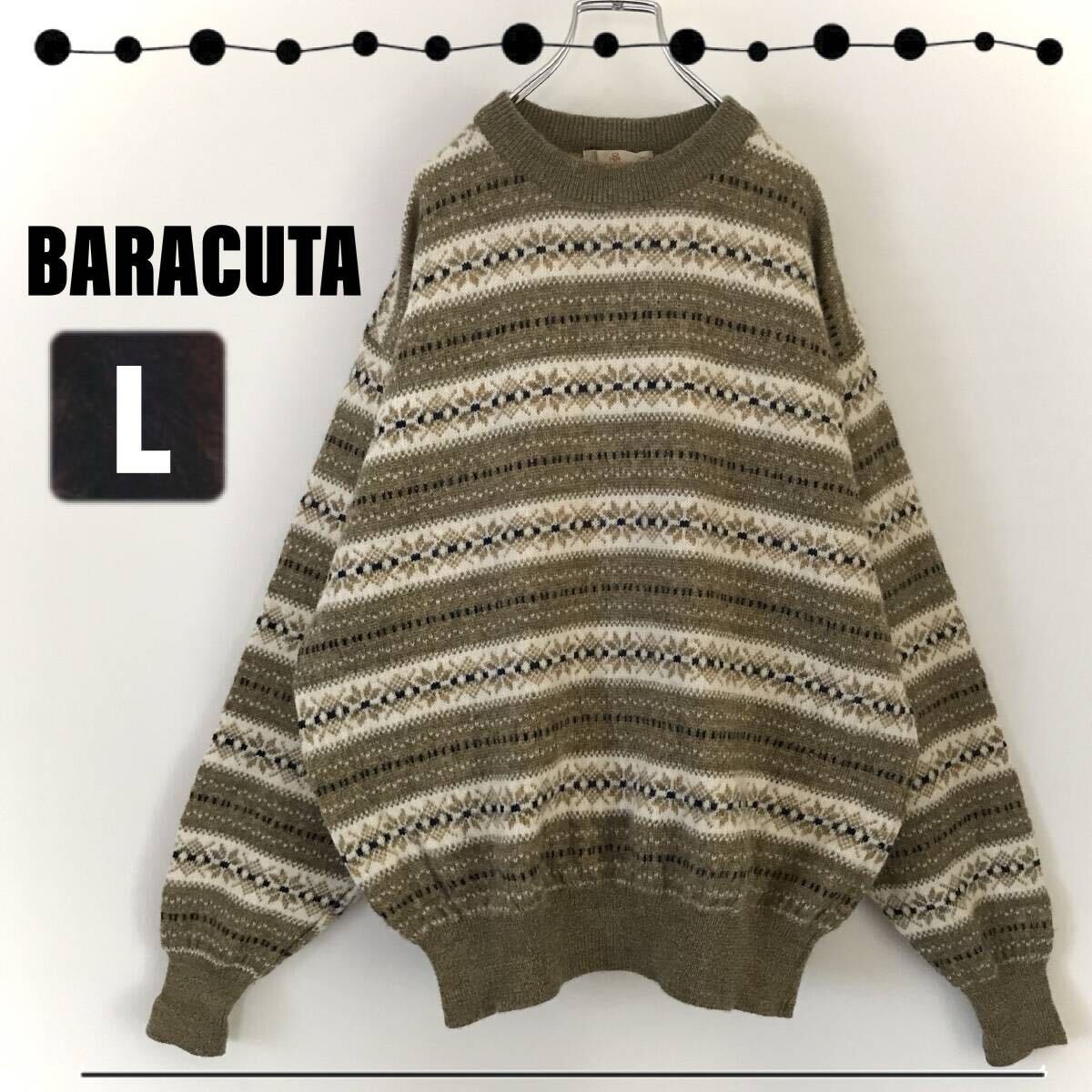 - BARACUTA バラクータ★フェアアイル柄クルーネックニット★セーター★グリーン系★メンズL 2310O012