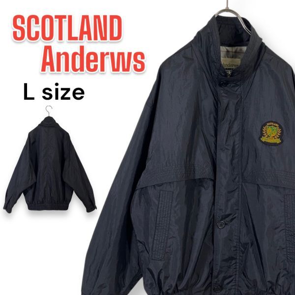 - ビンテージ スコットランド リンクス ナイロンジャケット ブルゾン Lサイズ 黒 ブラック スイングトップ ワッペン