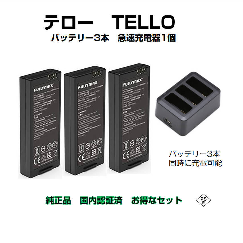 - ドローン tello テロー バッテリー 3本 と 高速充電器1本 純正品 国内認証済み