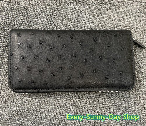- 新入荷ギフト最適 ダチョウ本革 長財布 オーストリッチ本革 本物 カード入れ ウォレット レザー財布 小銭入れ ラウンドファスナー ブラック