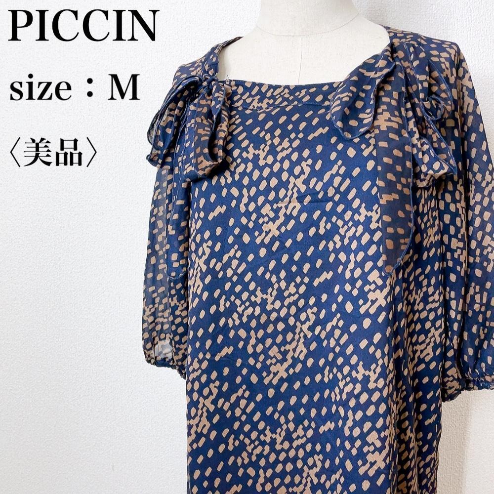- 【美品】PICCIN ピッチン カジュアル ひざ丈 ミディ フェミニン 上品 総柄 ワンピース 軽やか 着心地 着回し抜群 ロングシーズン ろ14