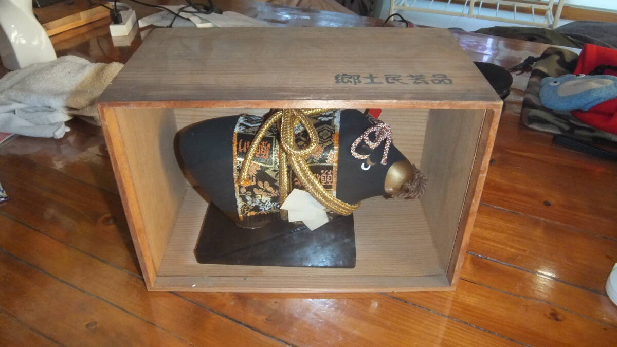 - R061209 断捨離 処分「民芸品 長崎県 願かけ牛 ガラス箱付 伝統民芸品」保管品 USED