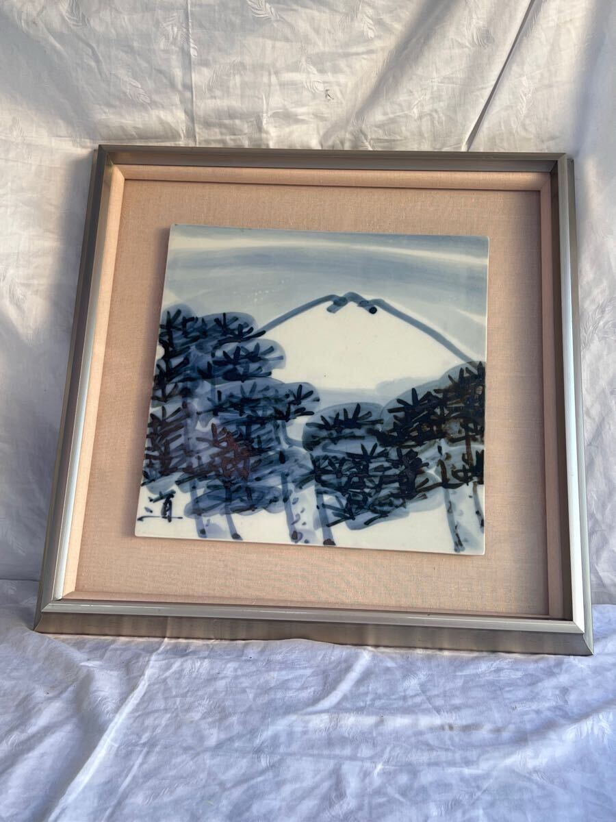 - ◆鈴木道雄作 富士山 染付 額 陶板画陶版画 道◆B-2137