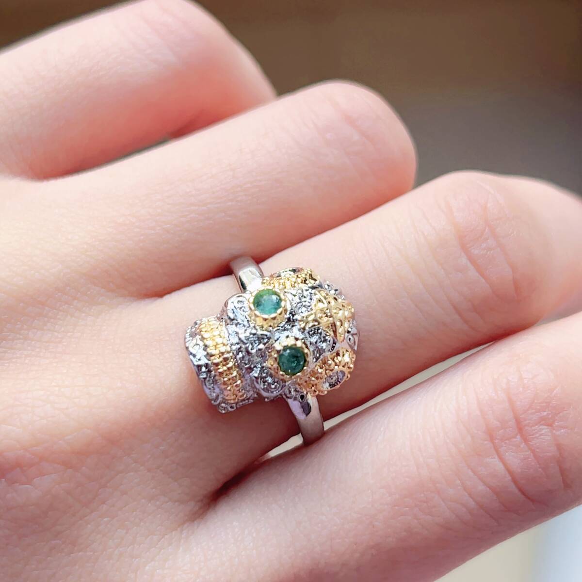 - ◇エメラルド(緑柱石)◇指輪◇リング◇フリーサイズ◇天然石◇パワーストーン◇巾着袋付◇プレゼントにも 034R12228