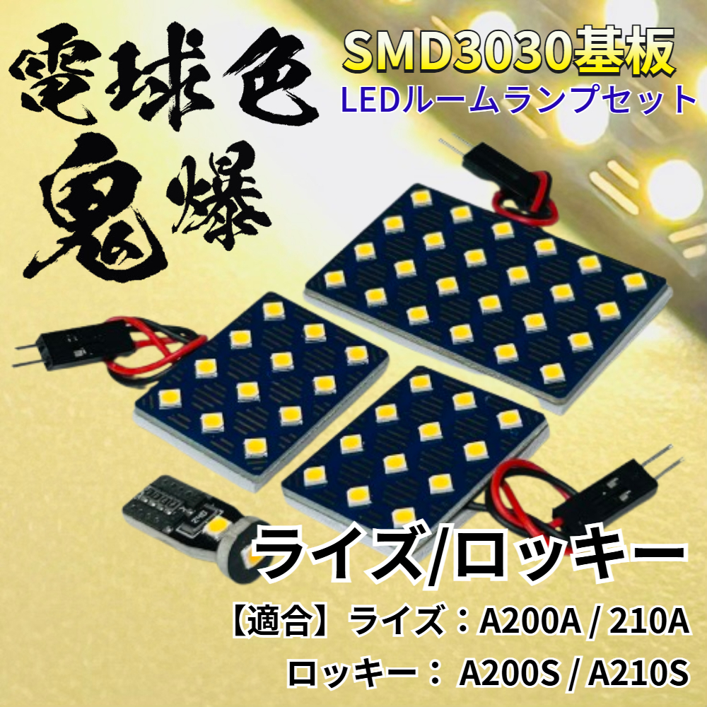 - 【電球色】RAIZE ライズ A200A / 210A /ロッキー A200S A210S 暖色 鬼爆基板 3030SMD LED ルームランプ セット 車内灯 パーツ アクセサリ