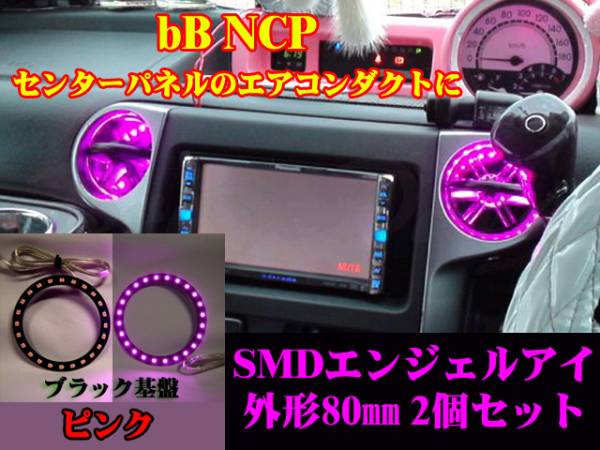 > ■bB NCP SMDエンジェルアイ/LEDリング 黒基盤 80㎜ 2個セット ピンク イカリング エアコンダクト