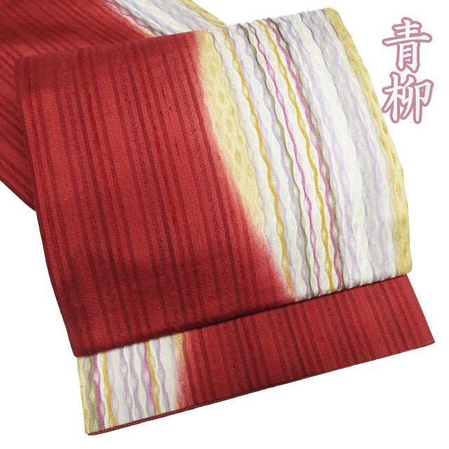 - 袋帯 中古 リサイクル 正絹 紬地 カジュアル 仕立て上がり 三通 十日町 青柳 紅樺色 多色 きもの北條 A1131-11