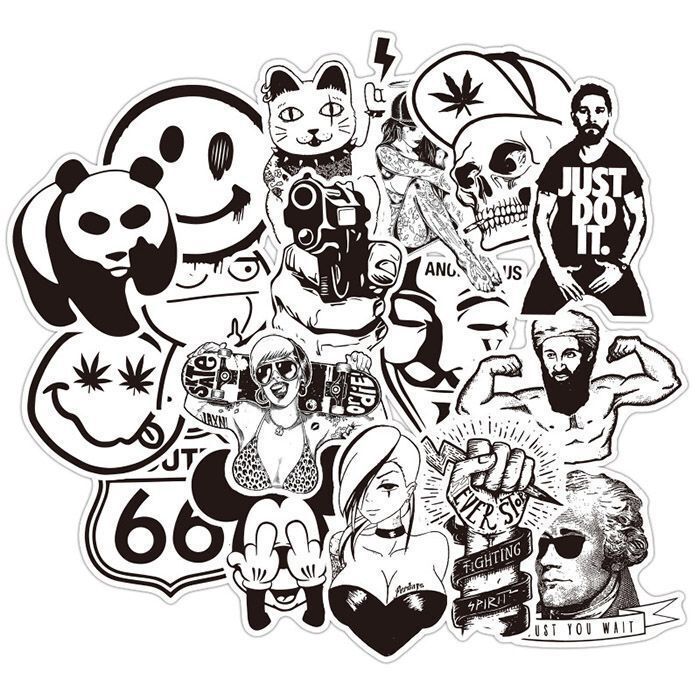 - I780 100枚 モノクロ 黒白 ステッカー 防水 耐水 シール 車