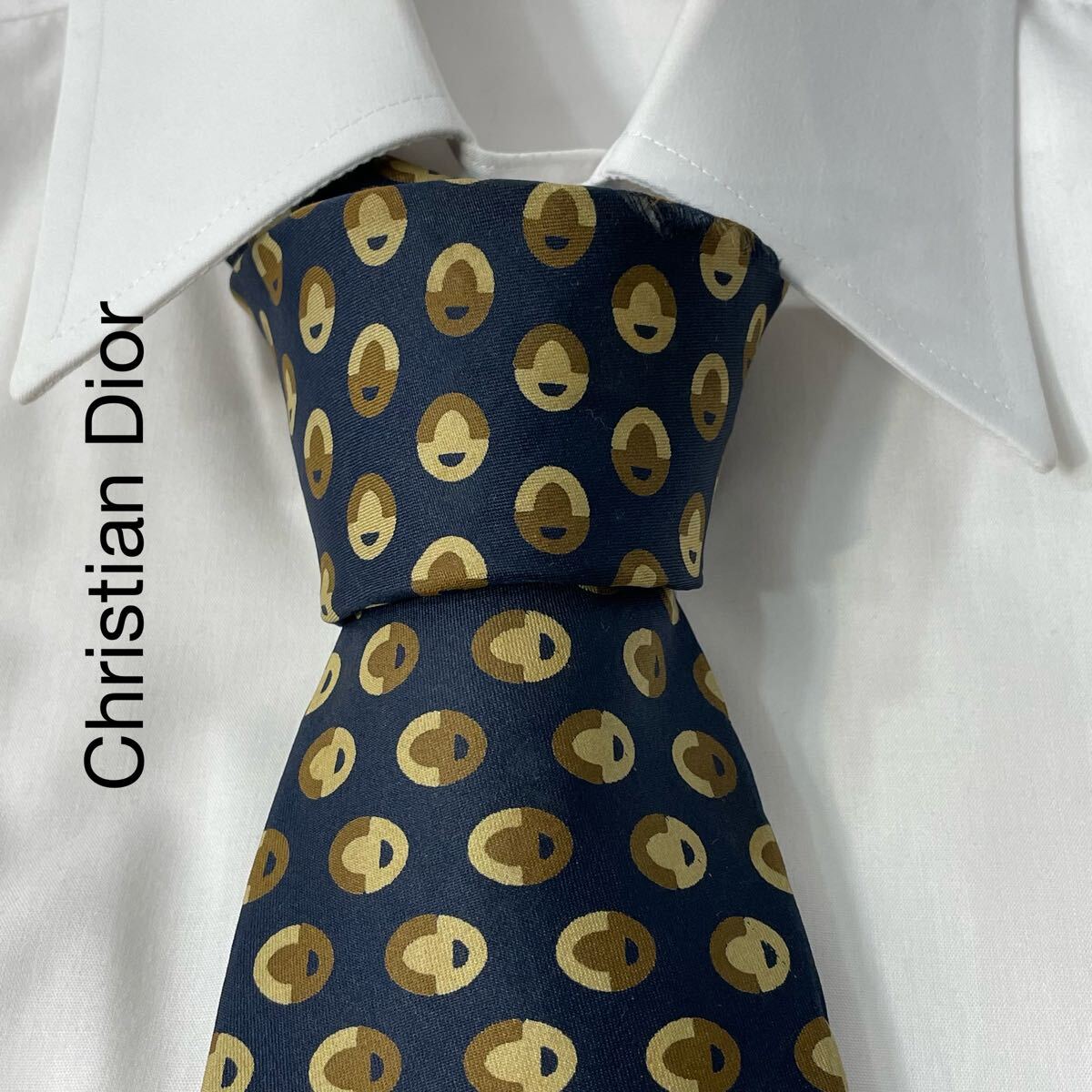 - Christian Dior クリスチャンディオール パターン柄 デザイン シルク ネクタイ ネイビー TG832