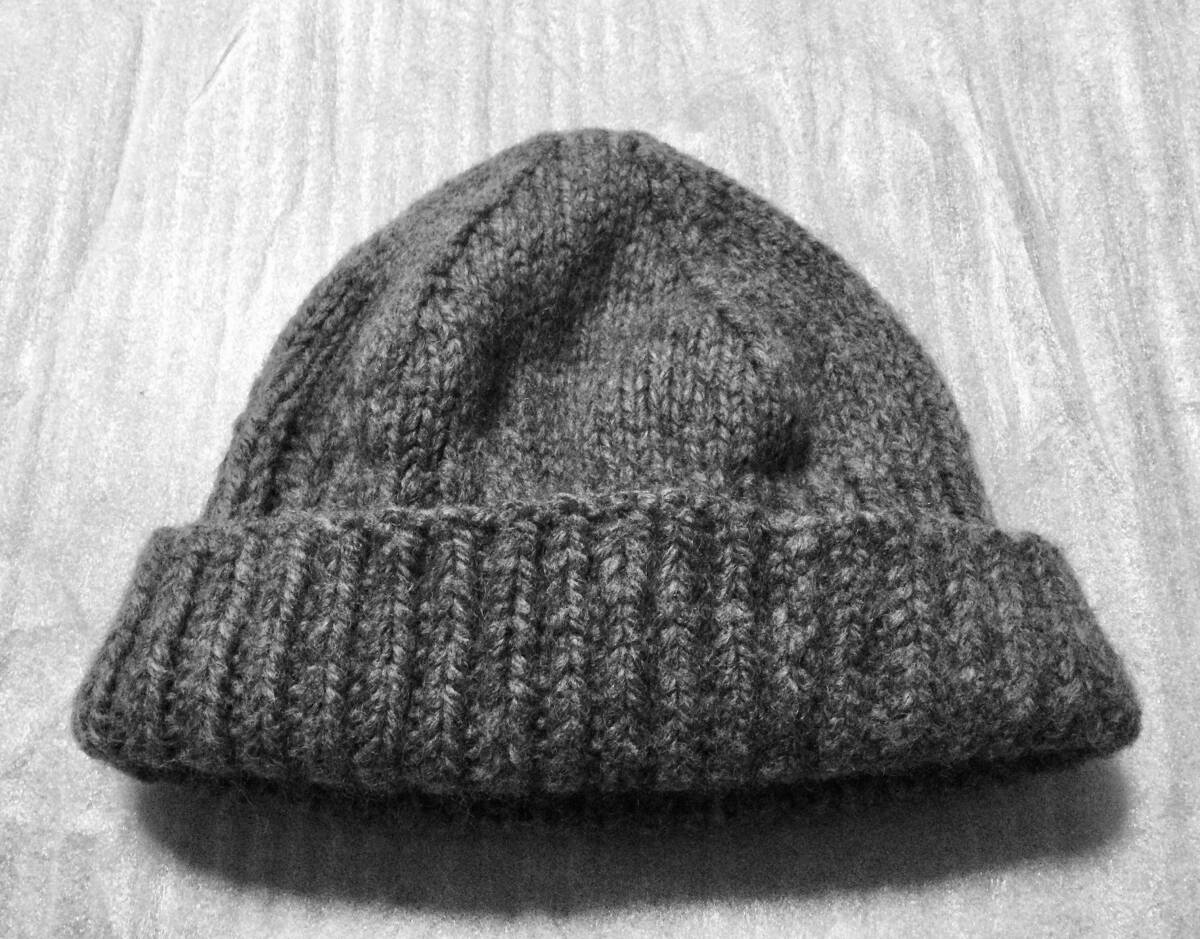 - ニットキャップ 極太手編み ウール グレー