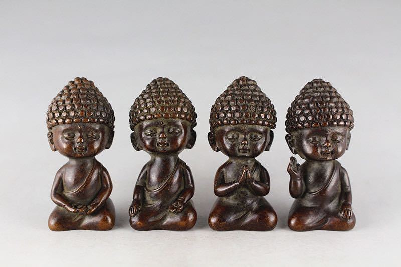 - 極美古銅煎茶道具 質感 細工実心銅、禅思 禅意 祈福 禅定四小佛置物 心癒し縁起物