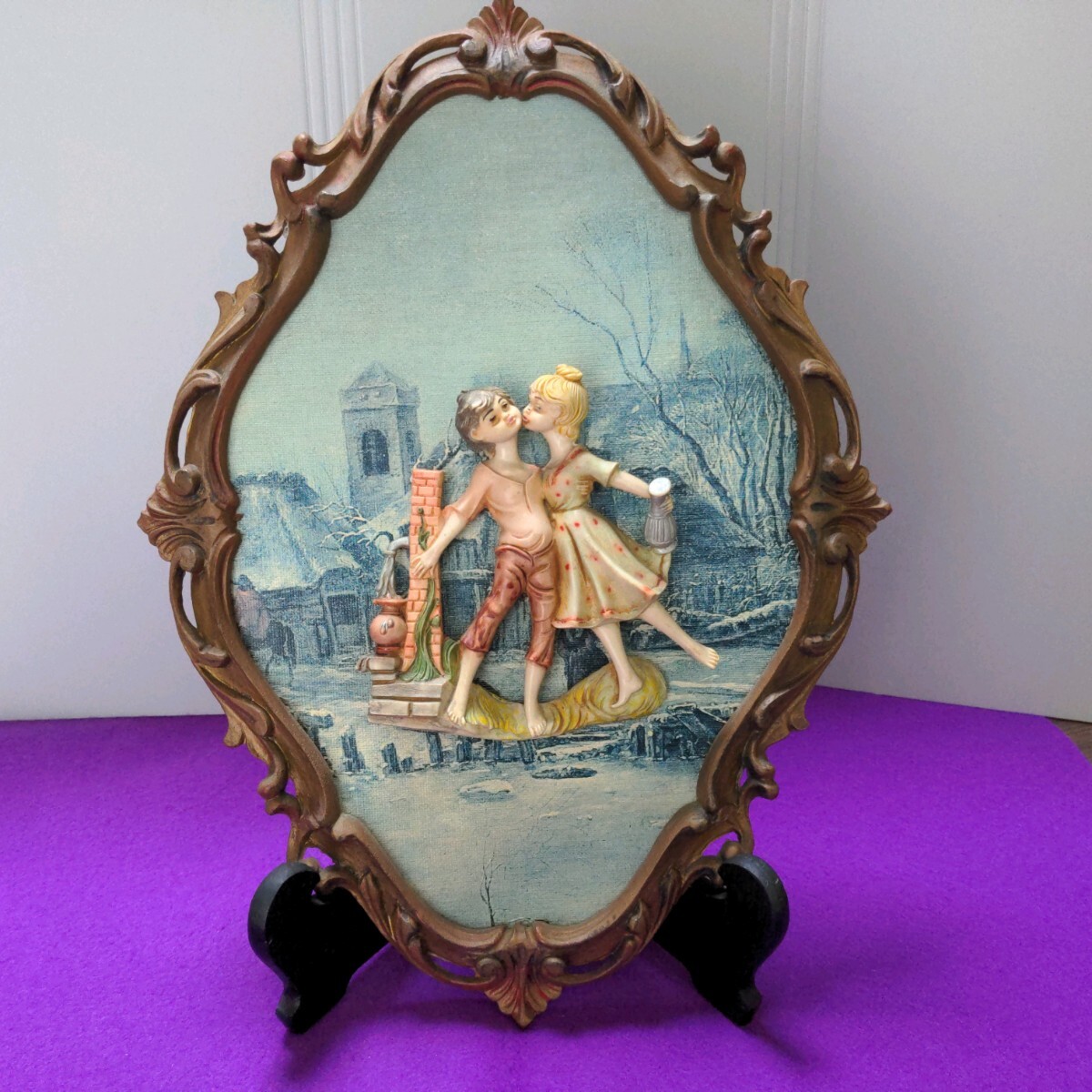 - 2-241228 イタリア製 農村で遊ぶ女の子と男の子 フィギュリン 壁掛け額 立体絵画 壁掛け 壁飾り インテリア 雑貨 レトロ アンティーク