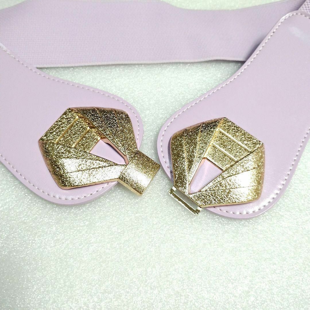 - 【パープル】リボンゴールド 太ベルト 太ゴムベルト 伸縮性 オフィス
