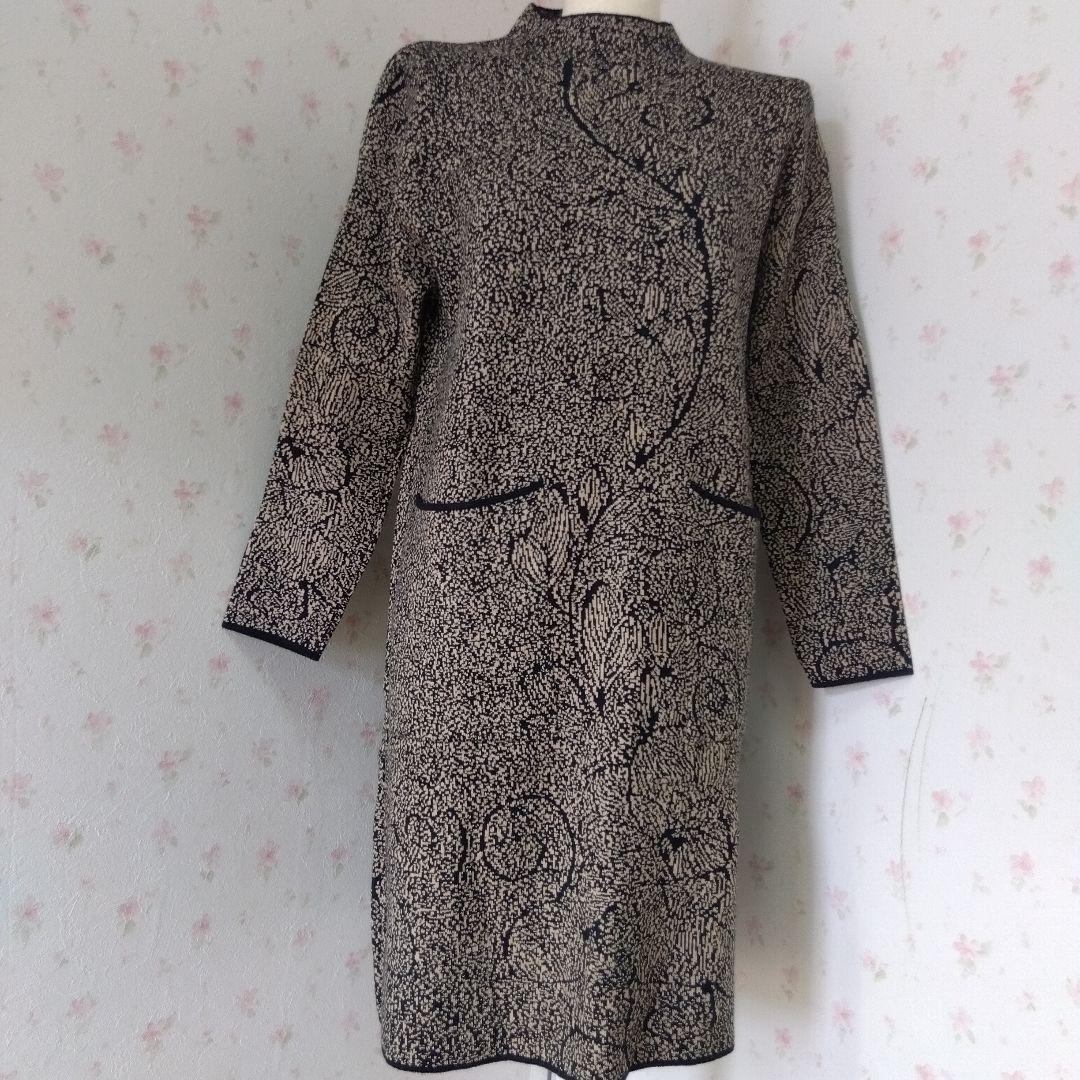 - ブラック色★L 長袖 ひざ丈 ニットワンピースおしゃれ