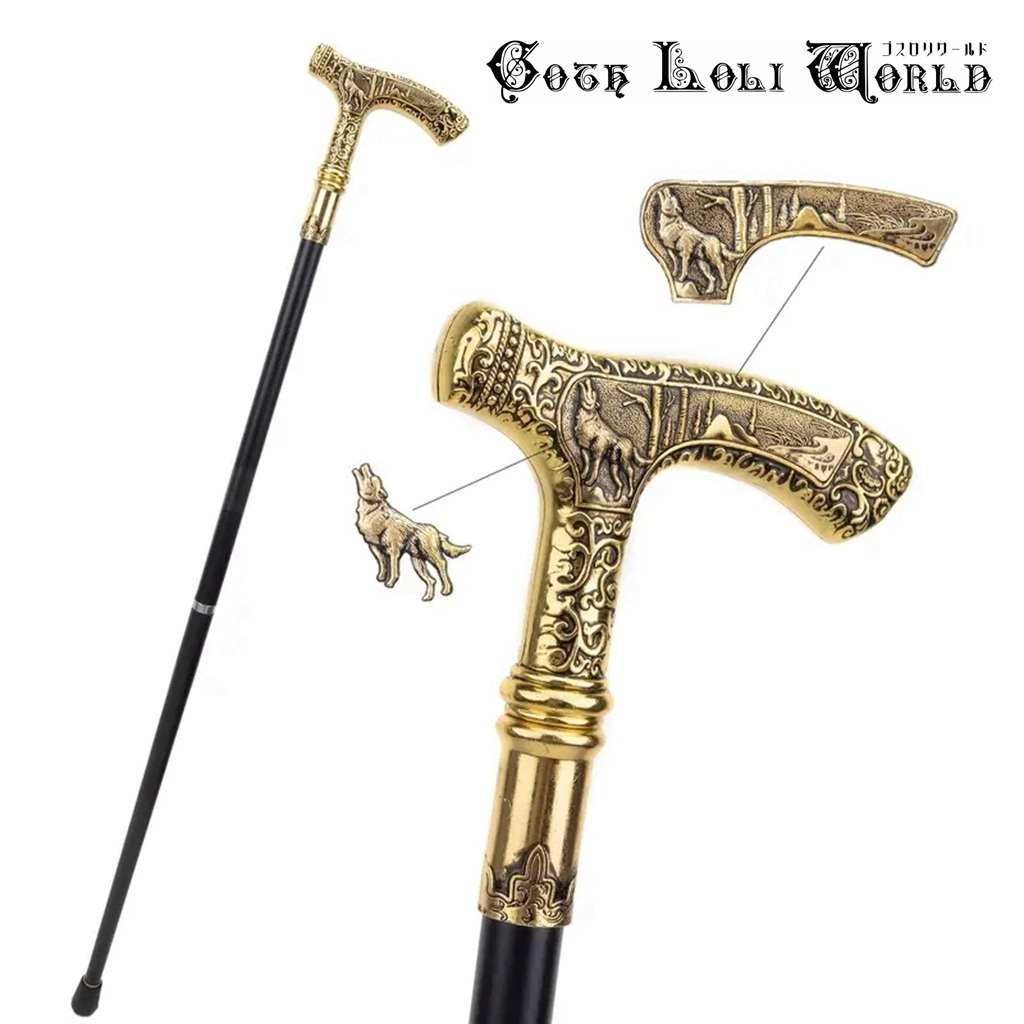- 即納 AS036 狼様 紳士 ステッキ 杖 つえ アンティーク調金色 高級 金属 ファッション ゴシック パンク ロック ビジュアル系 ヴィジュアル系