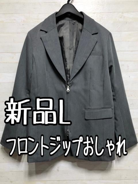 - 新品☆Lグレー系♪フロントジップおしゃれジャケット♪1.4万円〇B884