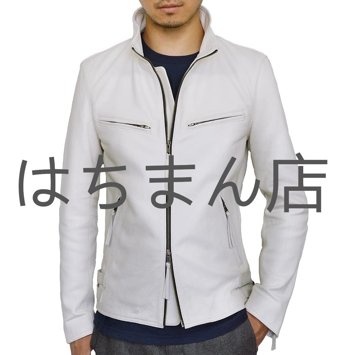> 本革 レザージャケット シングルライダース 革ジャン メンズ シンプル おしゃれ バイク ホワイト 白 秋 冬 S-3XL