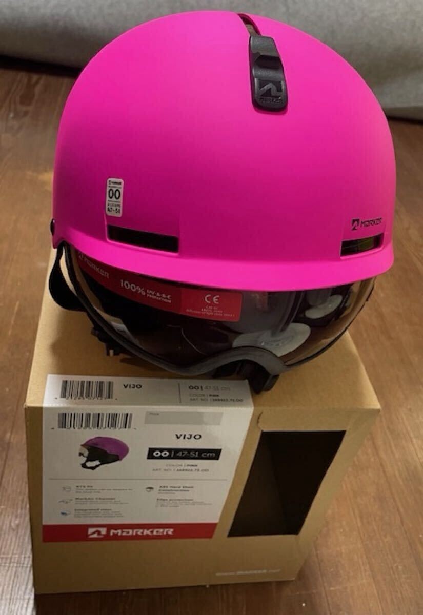 > ☆即決・送料込☆新品☆MARKER ヘルメットバイザー式 VIJO 47-51cm PINK マーカーレッド 安全基準クリア ゴーグルいらず 35%OFF