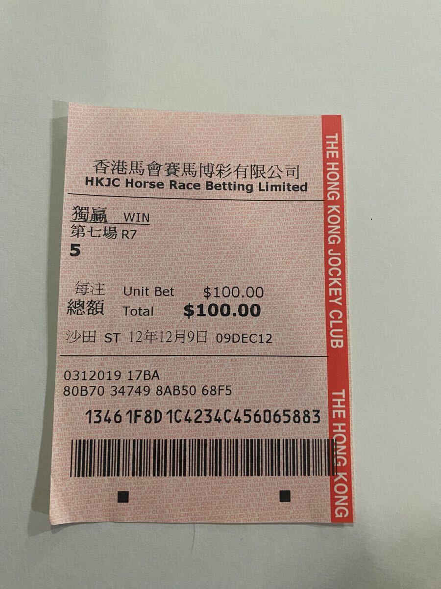 - 【Y】香港競馬 単勝馬券 2012年 香港マイル 5 サダムパティック 現地購入