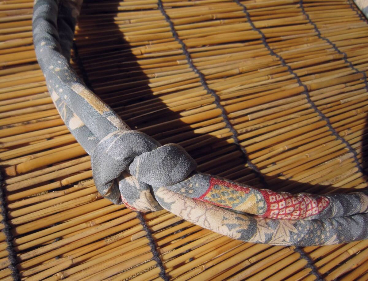■正絹・アンティーク紗綾型地紋・紋綸子 緑味の藍鼠色 手作りの丸ぐけ帯締めです。