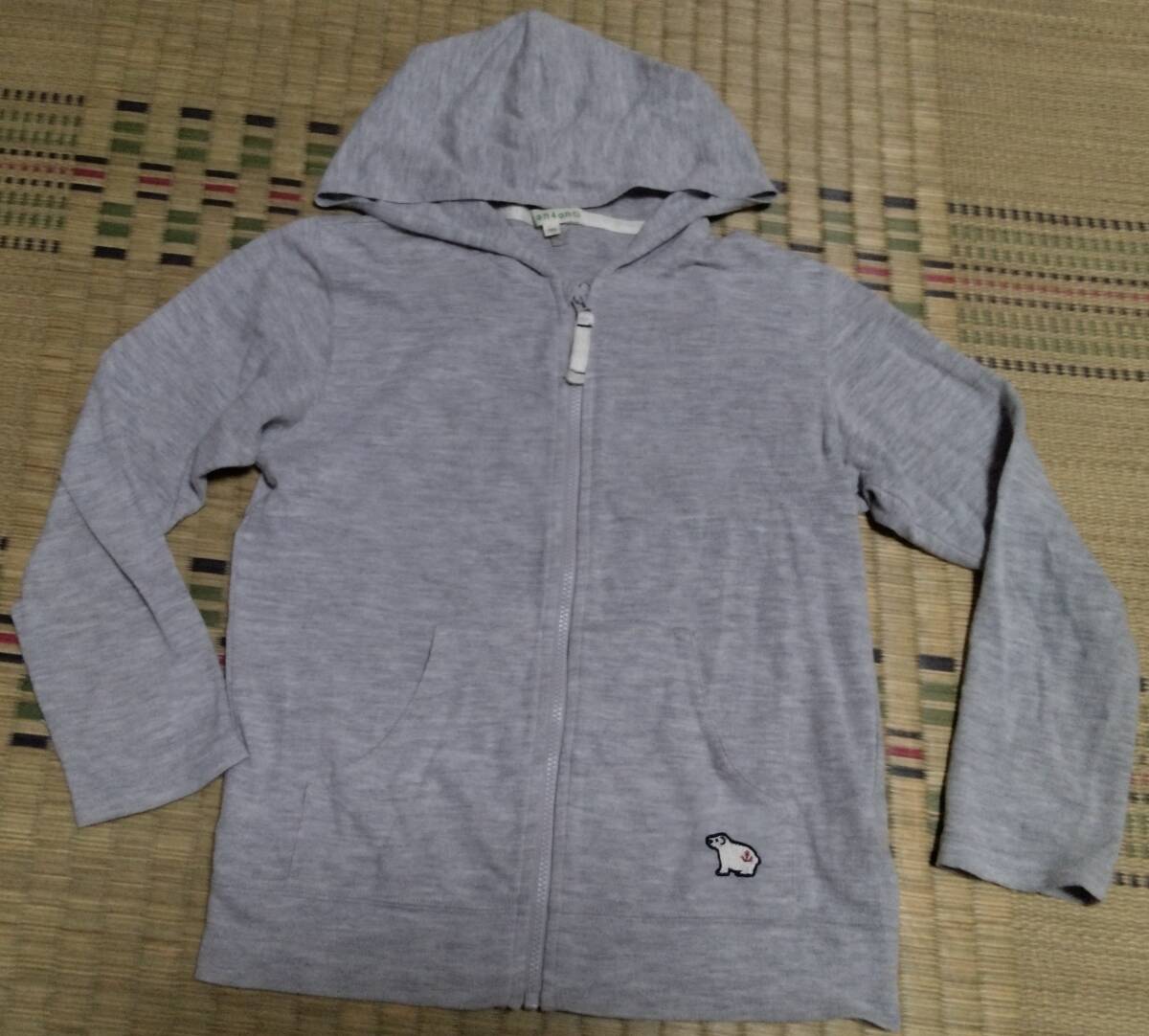 - 中古 3can4on 白くま刺しゅう梨地パーカー ライトグレー(011) 13(130cm) 定価2750円
