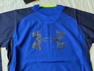 > 新品★アンダーアーマー★ピステシャツ★メンズMD★紺×青★カモフラージュ風マーク大★胸ロゴ★長袖シャツ★UNDER ARMOU