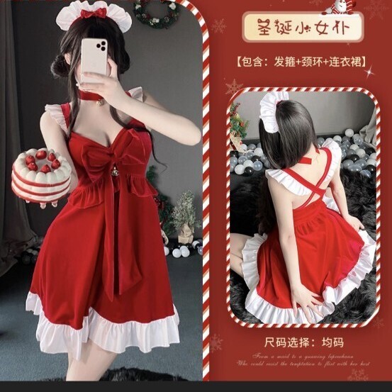 - メイドコスプレ ワンピース セクシー クリスマス コスチューム 衣装 可愛い サンタ 送料無料