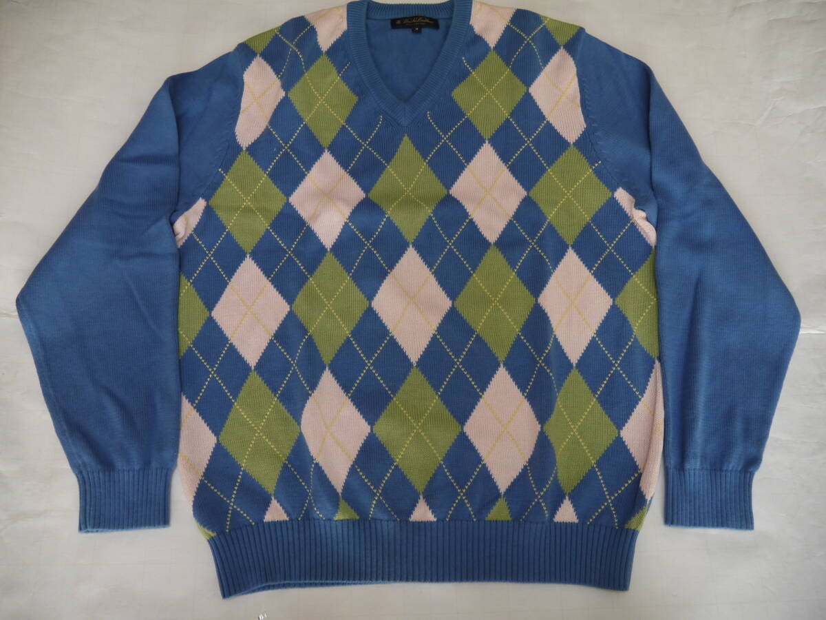 > 【美 品】BrooksBrothers ブルックスブラザース コットン100% アーガイルセーター サイズM ブルー系