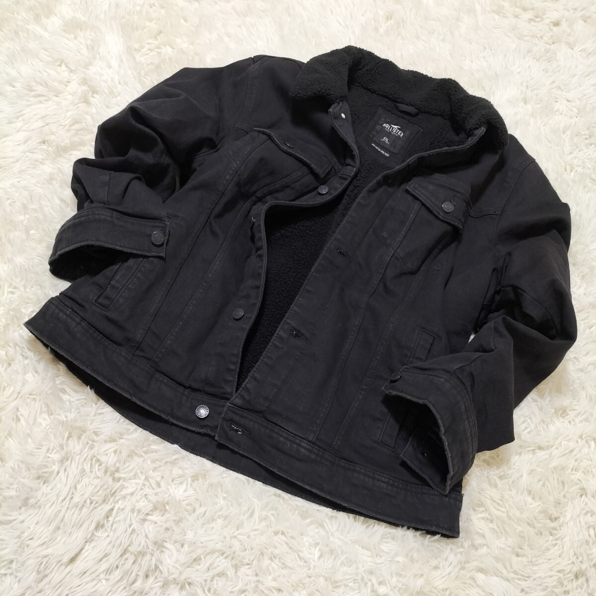 > ★HOLLISTER ホリスター シェルパ 裏ボア デニムジャケット Gジャン メンズ サイズXXL ブラック 黒系 ヴィンテージ&ダメージ加工 古着 USED