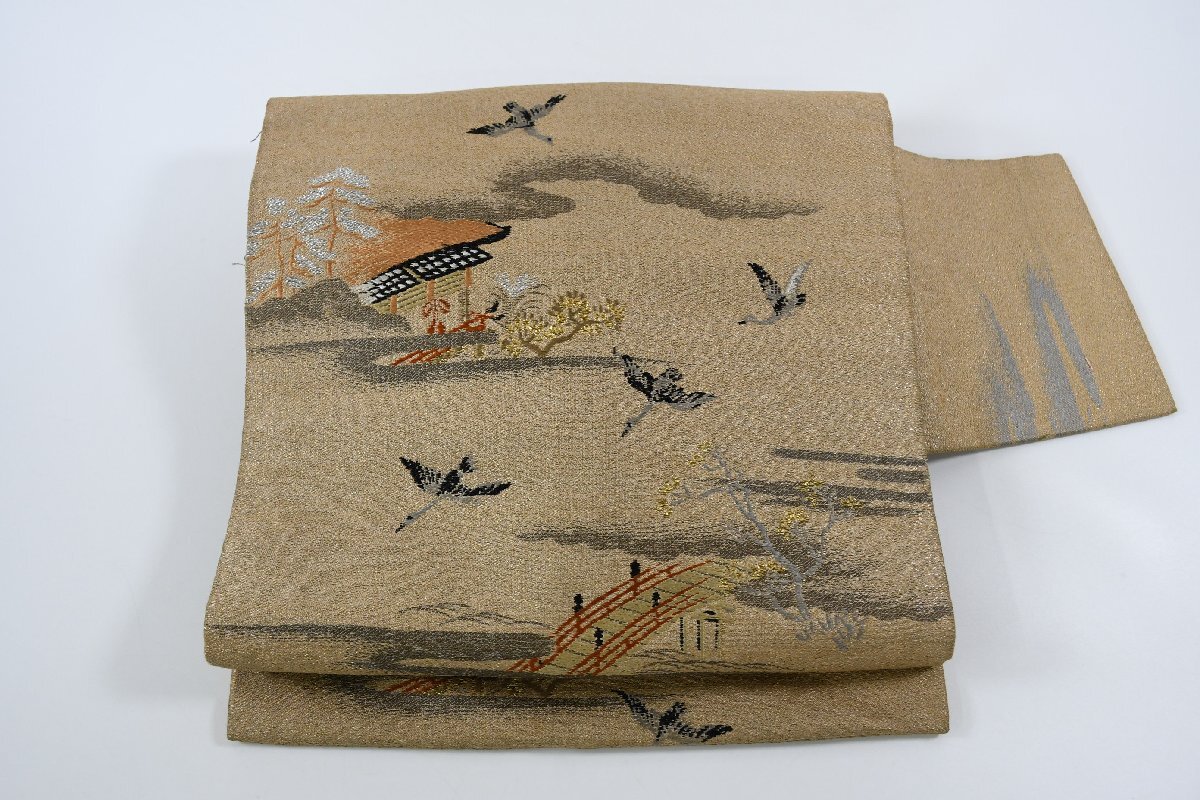 - 名古屋帯 アンティーク 舞鶴 風景 帯丈328cm ★着物屋 ne-13623 桜庭呉服店