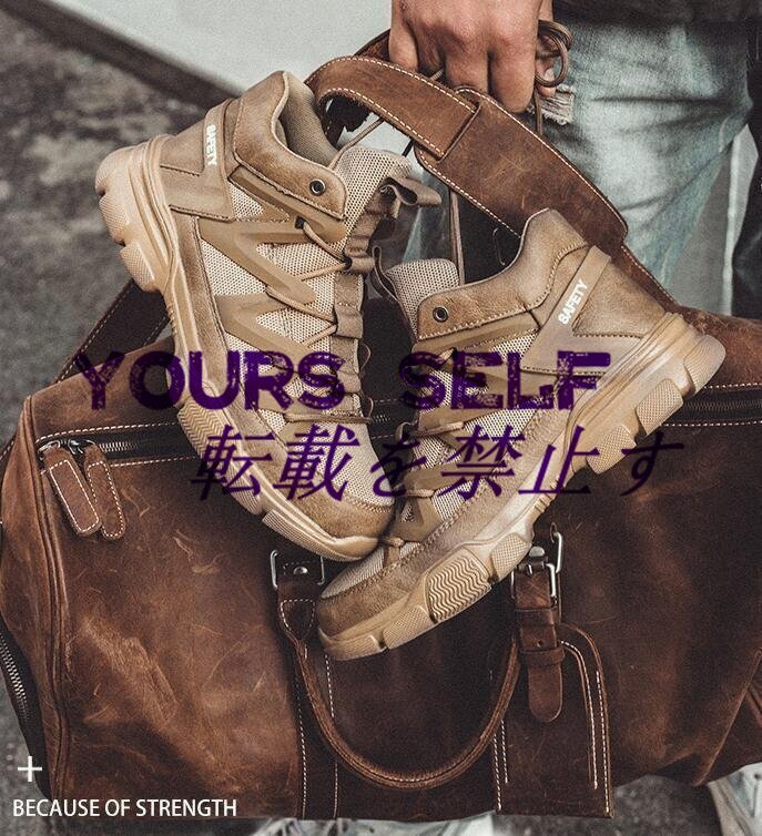 - メンズ トレッキングシューズ バイクブーツ 鋼鉄先芯 タクティカルブーツ 登山靴 防滑 耐磨耗 登山靴 23~28.5cm カーキ