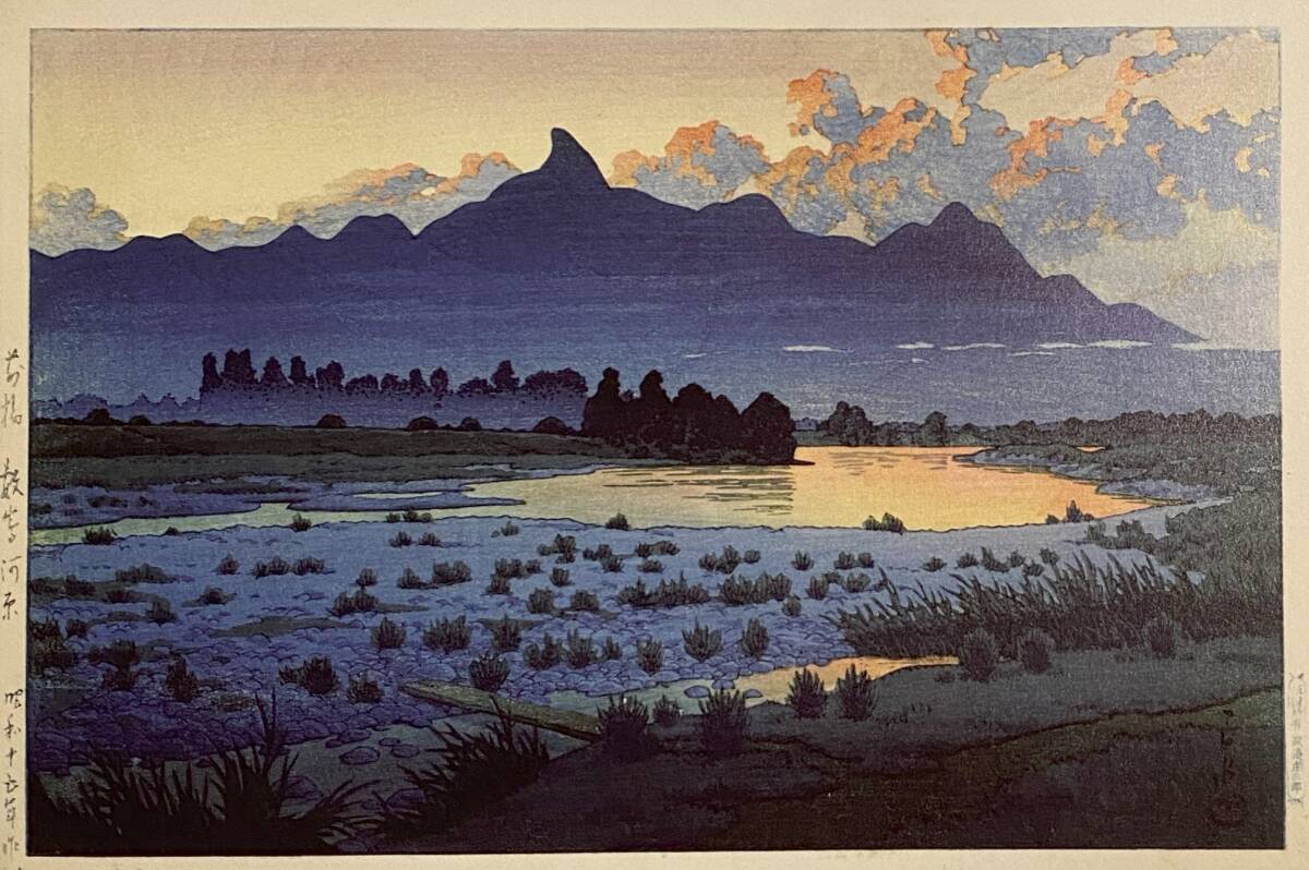 - 川瀬巴水、〈前橋敷島河原〉、希少画集画、高級新品額・額装付、状態良好、送料込み