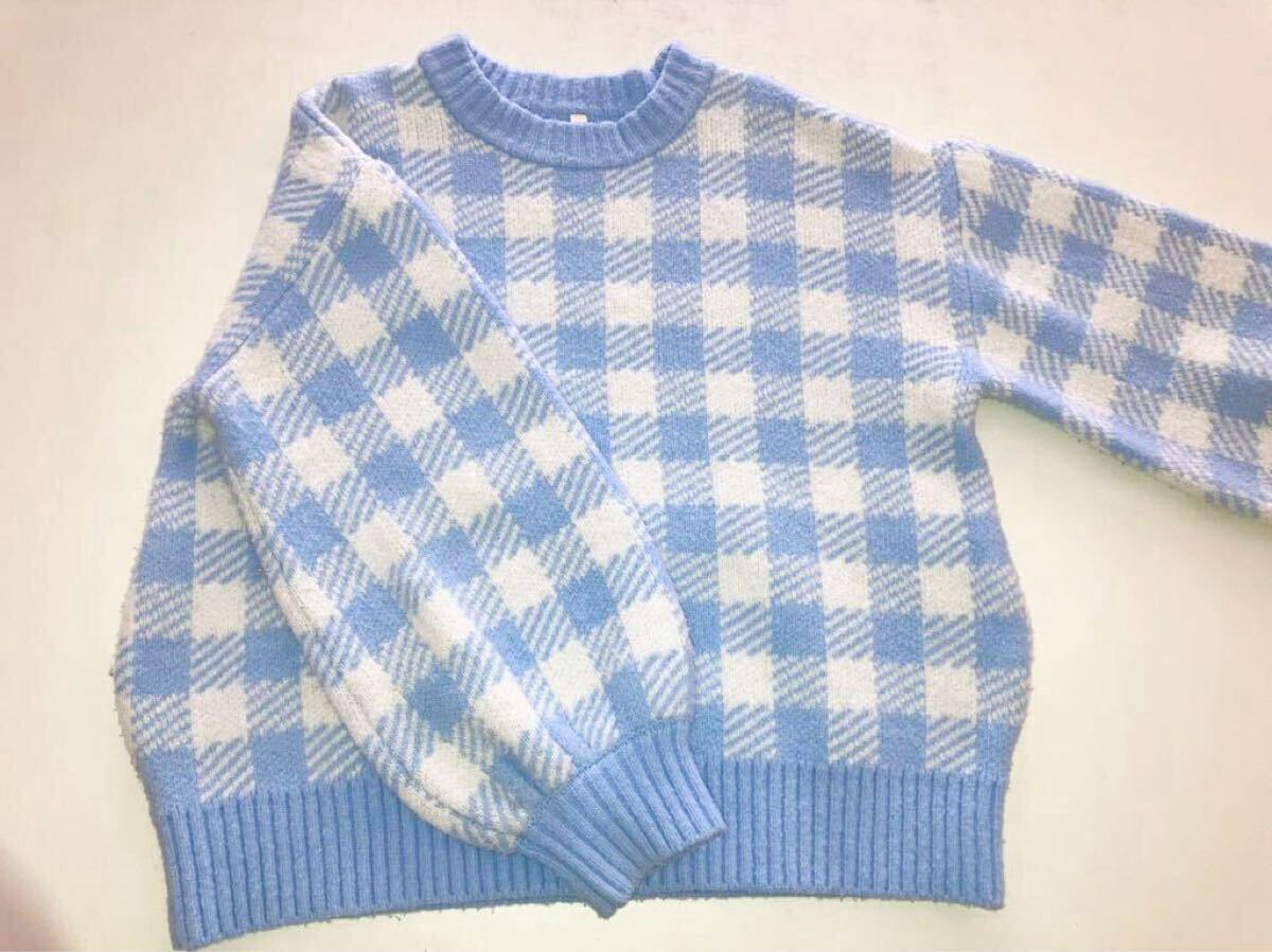 - GU KIDS チェックセーター ニット クルーネック ブルー サイズ130