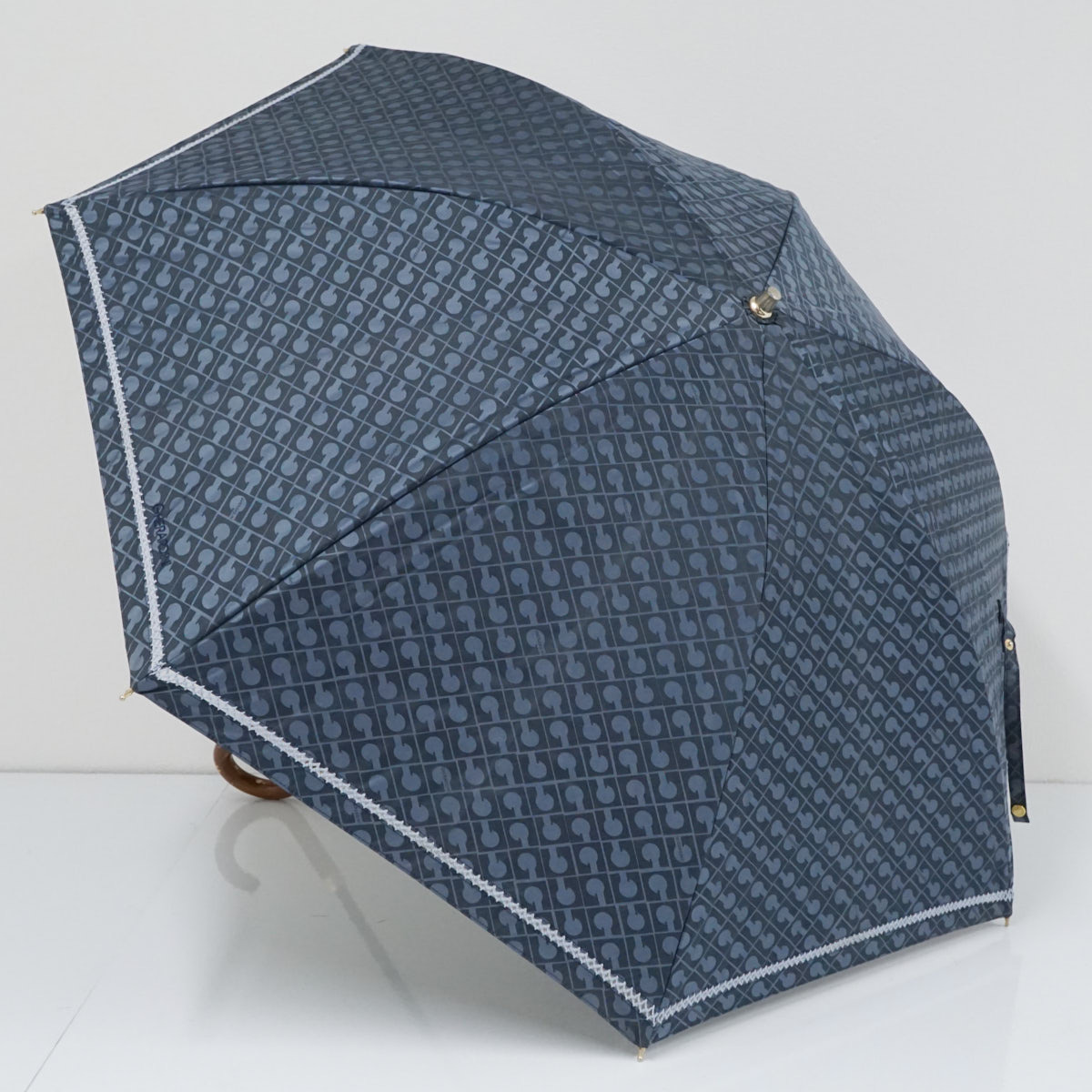 > 日傘 GHERARDINI ゲラルディーニ 晴雨兼用日傘 USED美品 ネイビー モノグラム ロゴ刺繍 遮光 グラス骨 軽量 50cm A2054