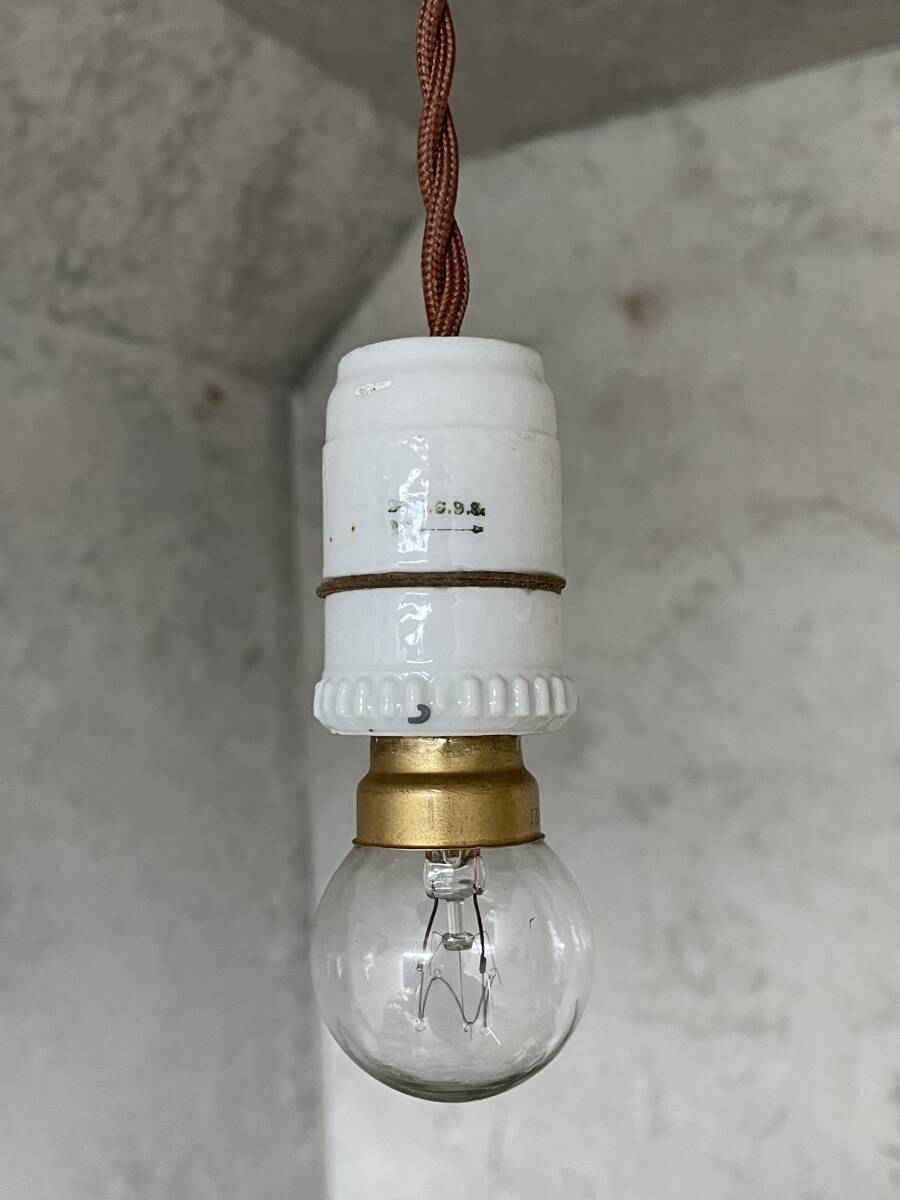 - T10. フランスアンティーク 吊り下げ ライト ソケット ランプ 陶器 仏 北欧 照明 アトリエ インダストリアル カフェ レトロ